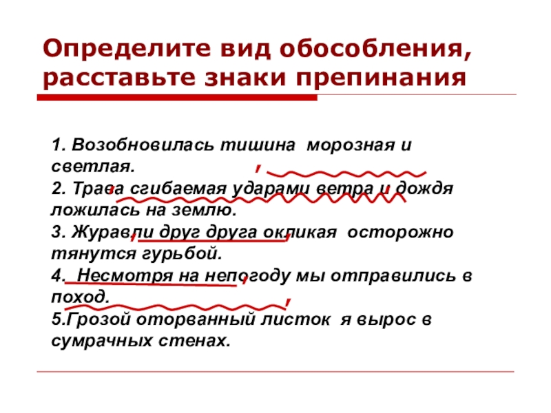 Слайд 173. Укажите номер предложения с обособленным определением, имеющим добавочное обстоятельственное значение.