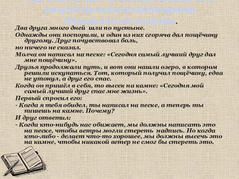 Молча он написал на песке: «Сегодня самый лучший друг дал мне пощёчину».
