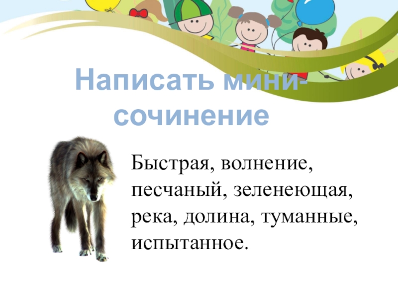 Написать мини-сочинениеБыстрая, волнение, песчаный, зеленеющая, река, долина, туманные, испытанное.