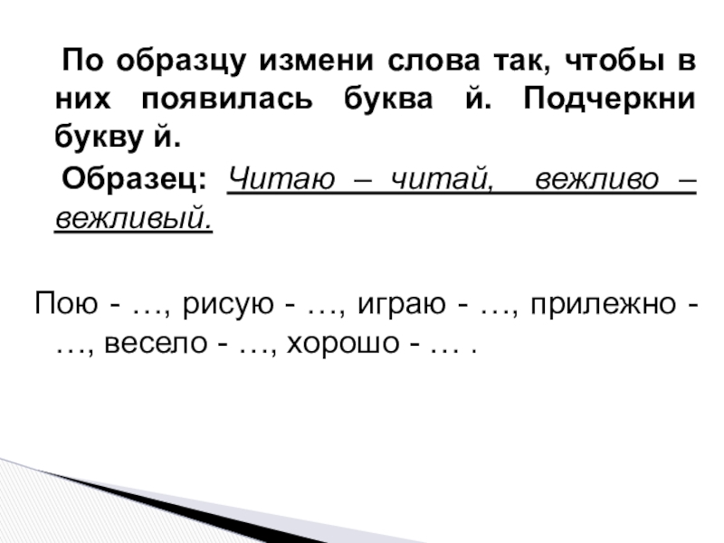 По образцу измени слова так, чтобы в них появилась буква й. Подчеркни букву й. 	Образец: Читаю –