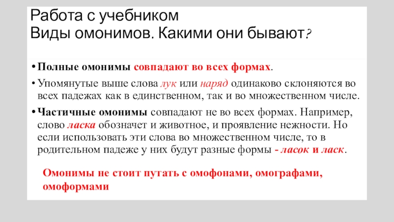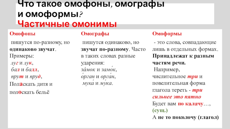 Омонимы не стоит путать с омофонами, омографами, омоформами