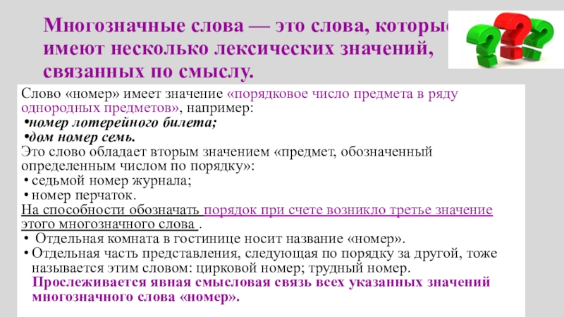 Слово «номер» имеет значение «порядковое число предмета в ряду однородных предметов», например: