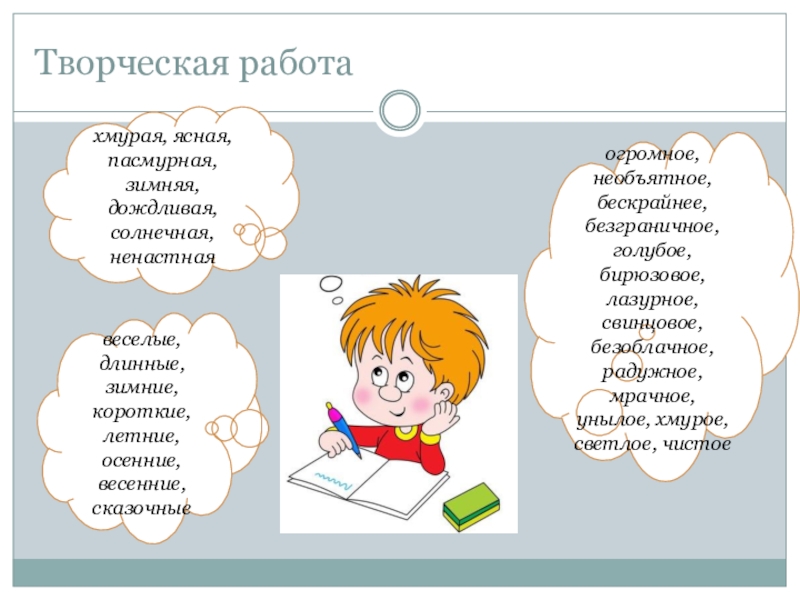 хмурая, ясная, пасмурная, зимняя, дождливая, солнечная, ненастная