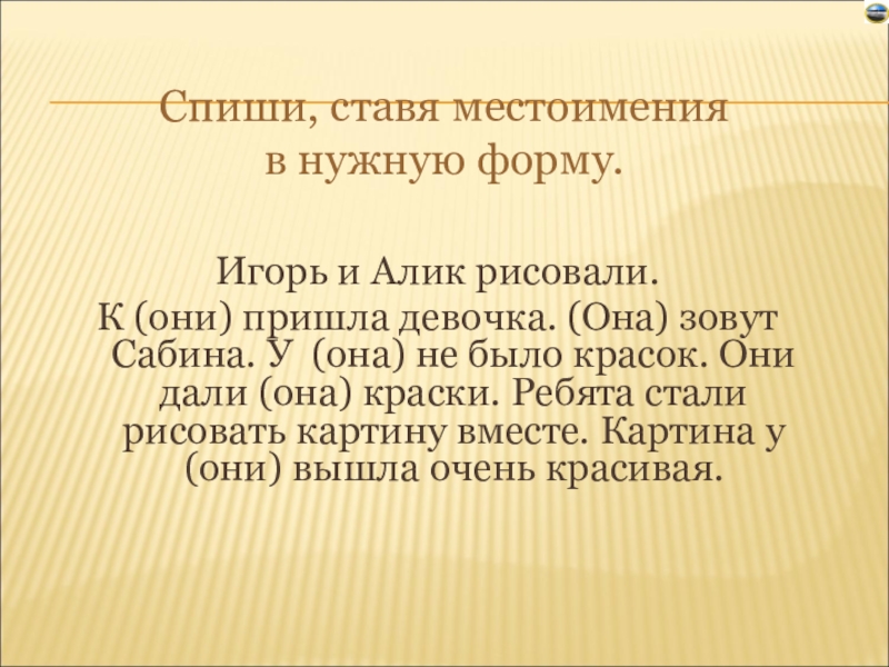 Спиши, ставя местоимения