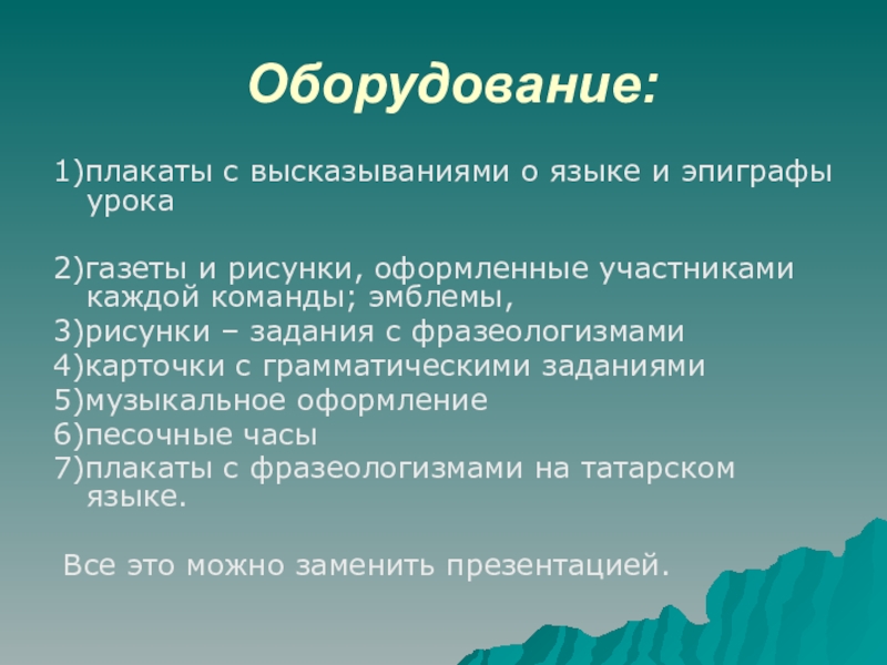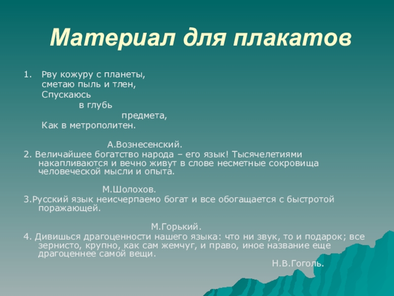1)плакаты с высказываниями о языке и эпиграфы урока