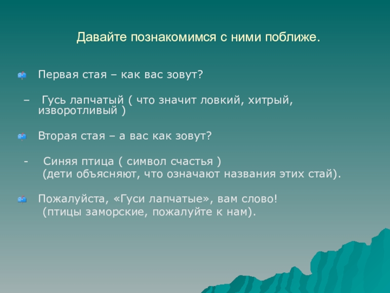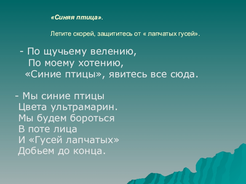 «Гусями лапчатыми» и «Синими птицами» ,-