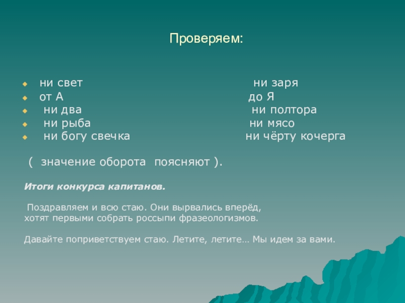 Молодцы! С такими знатоками фразеологии мы не только тропинку, но и