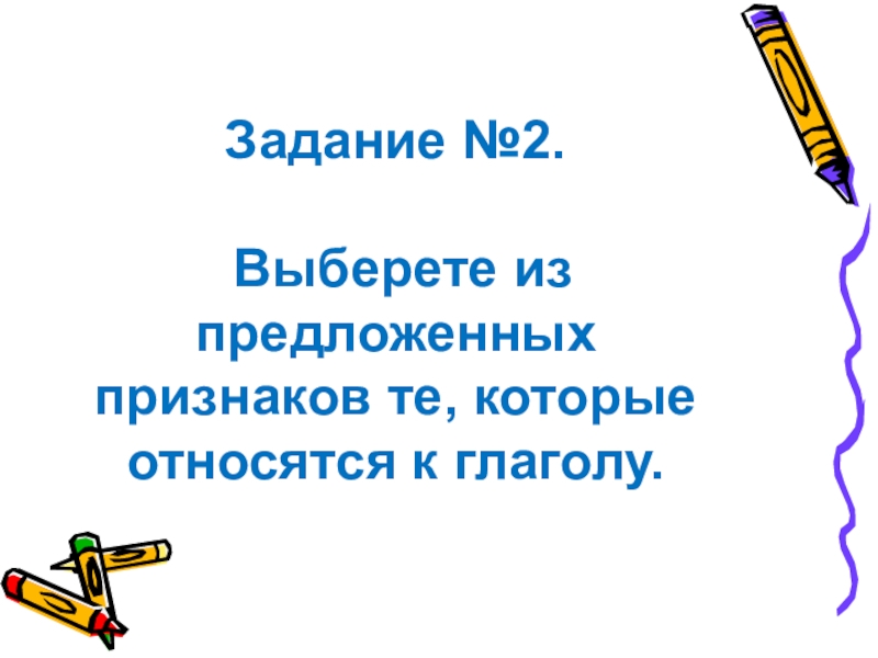 Слайд 5Задание №2. Выберете из предложенных признаков те, которые относятся к глаголу.