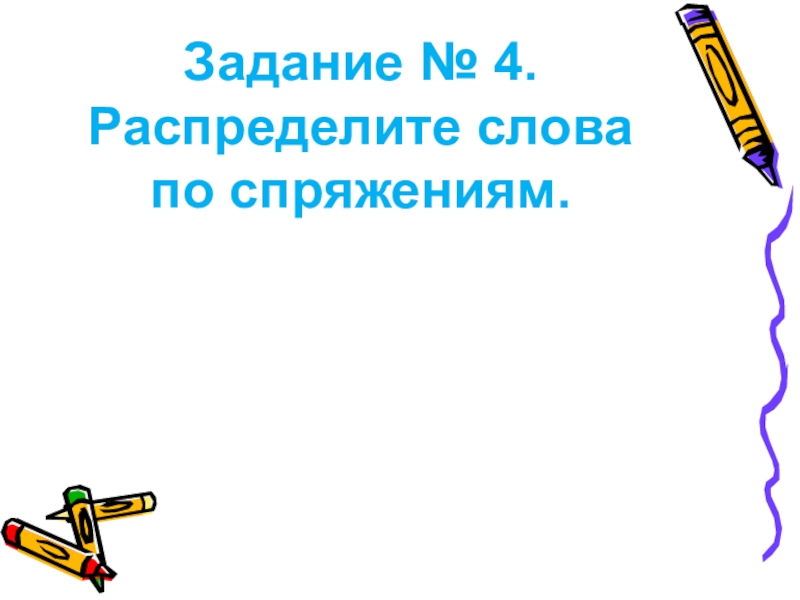 Слайд 11Задание № 4. Распределите слова по спряжениям.