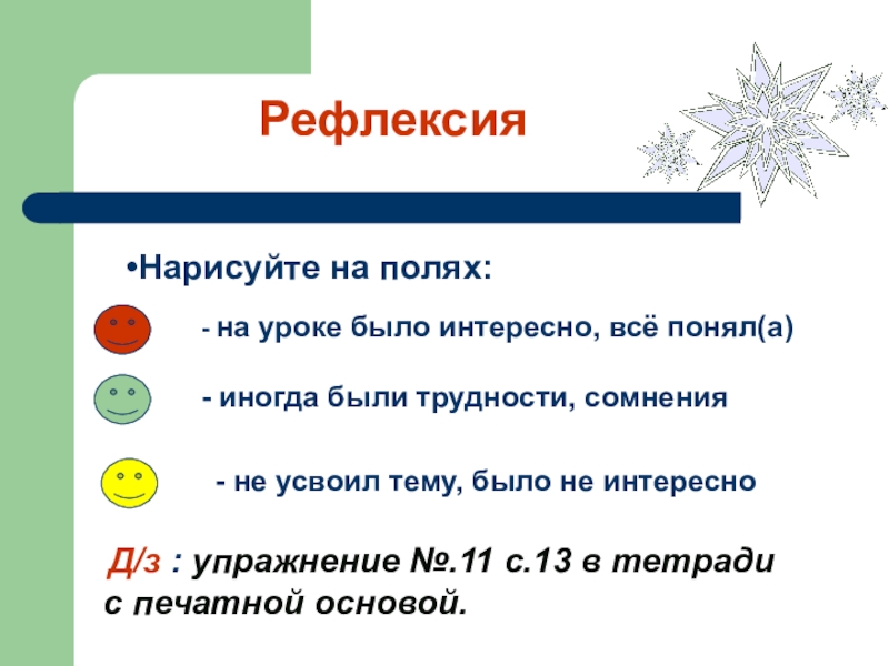 Д/з : упражнение №.11 с.13 в тетради с печатной основой.