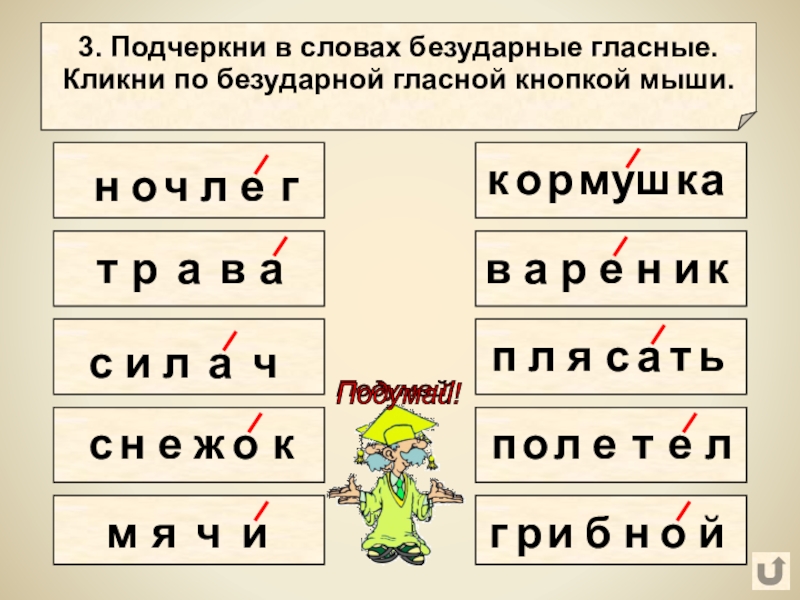 - нахождение ошибок в написании безударной гласной в корне слова.