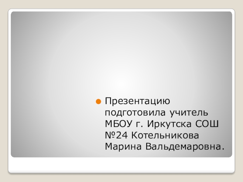 Слайд 6Презентацию подготовила учитель МБОУ г. Иркутска СОШ №24 Котельникова Марина Вальдемаровна.