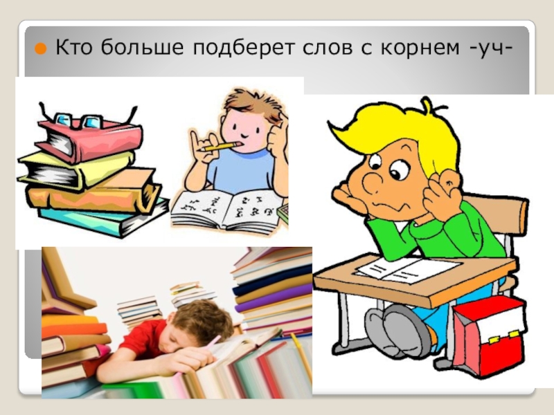 Слайд 4Кто больше подберет слов с корнем -уч-