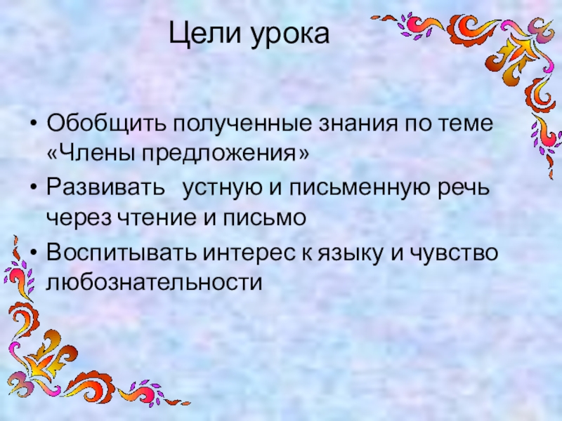 Обобщить полученные знания по теме «Члены предложения»