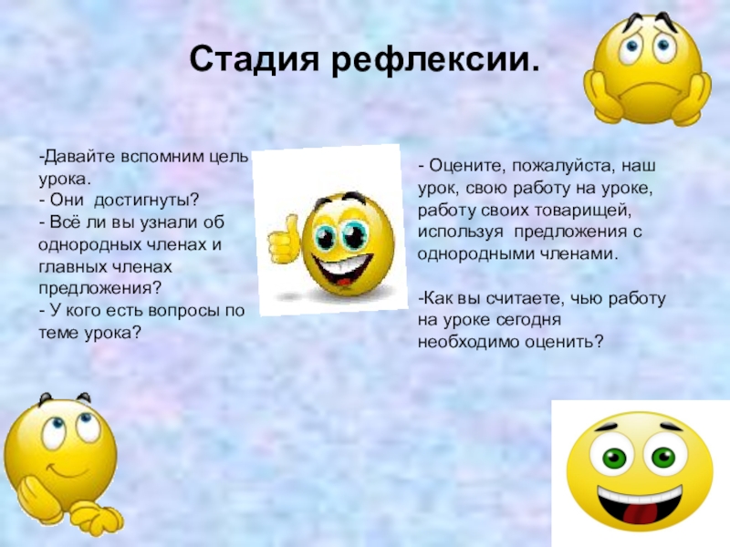 работу своих товарищей, используя предложения с однородными членами.