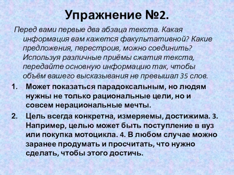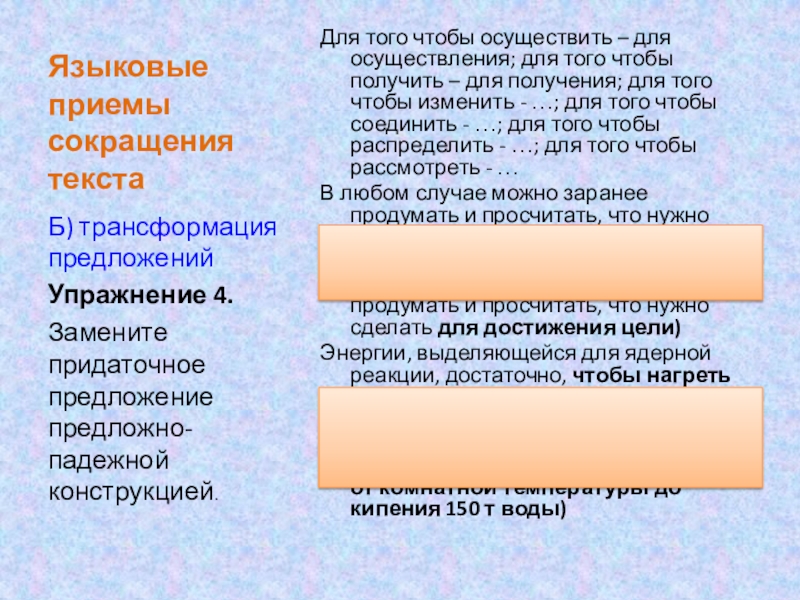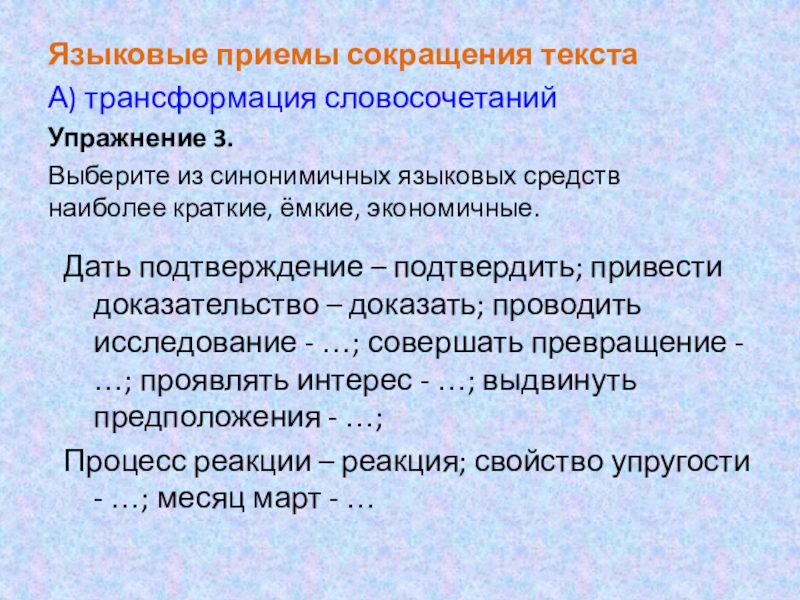 Выберите из синонимичных языковых средств наиболее краткие, ёмкие, экономичные.