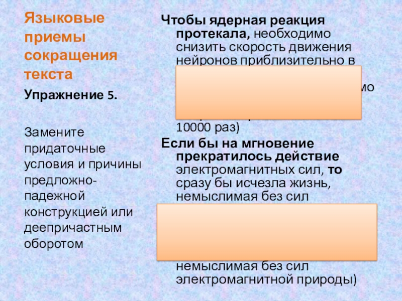 Замените придаточные условия и причины предложно-падежной конструкцией или деепричастным оборотом