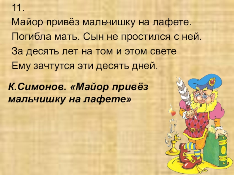 К.Симонов. «Майор привёз мальчишку на лафете»