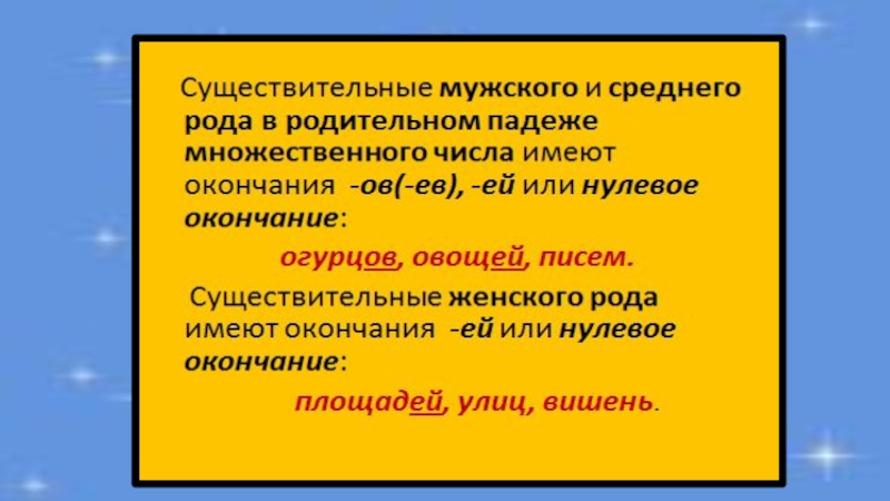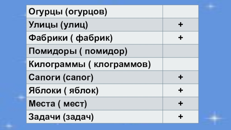 распознавать существительные в родительном падеже множественного числа и употреблять эти существительные в речи.