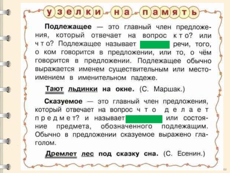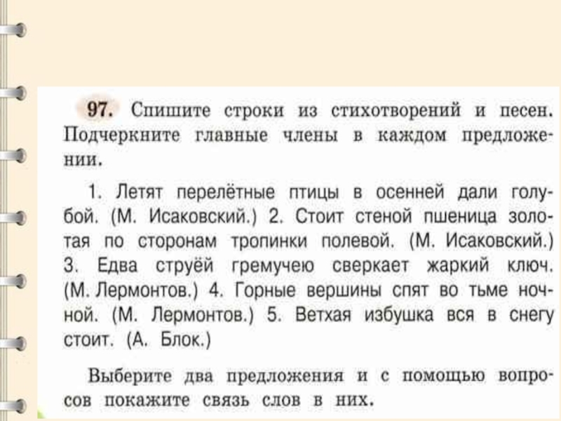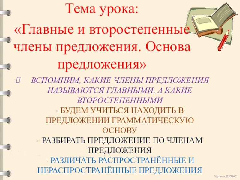 «Главные и второстепенные члены предложения. Основа предложения»