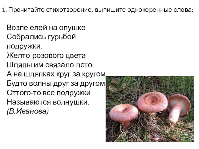 1. Прочитайте стихотворение, выпишите однокоренные слова: