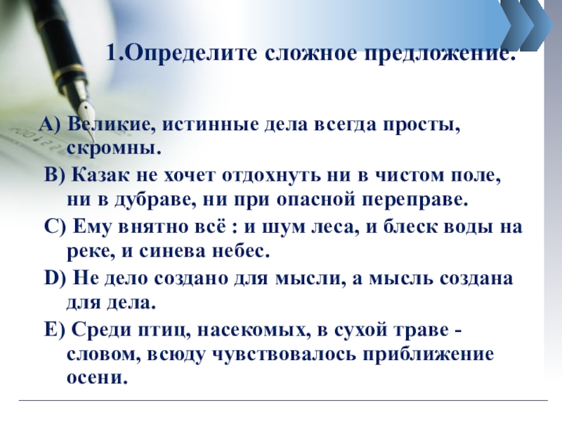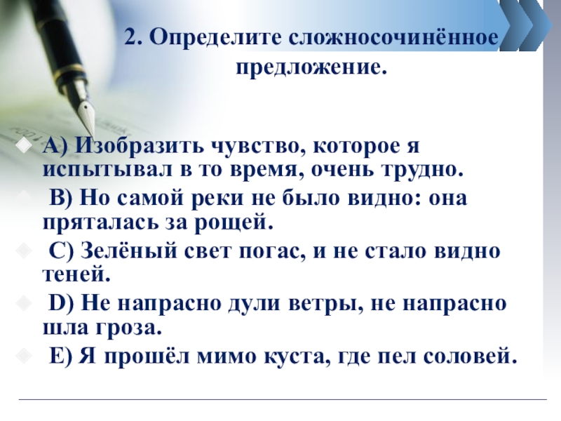 Слайд 285.Определите сложносочинённое предложение с соединительным союзом: