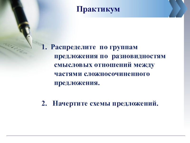 1. Распределите по группам предложения по разновидностям смысловых отношений между