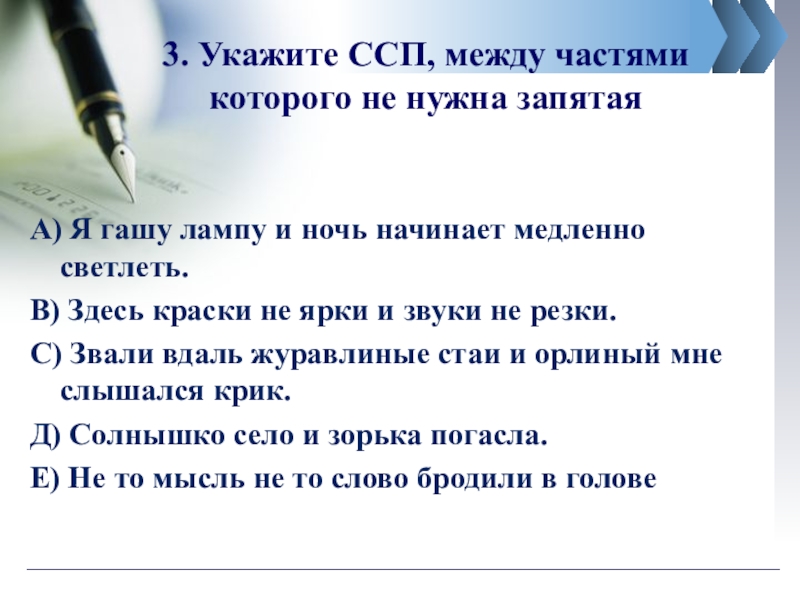 Слайд 263. Укажите ССП, между частями которого не нужна запятая