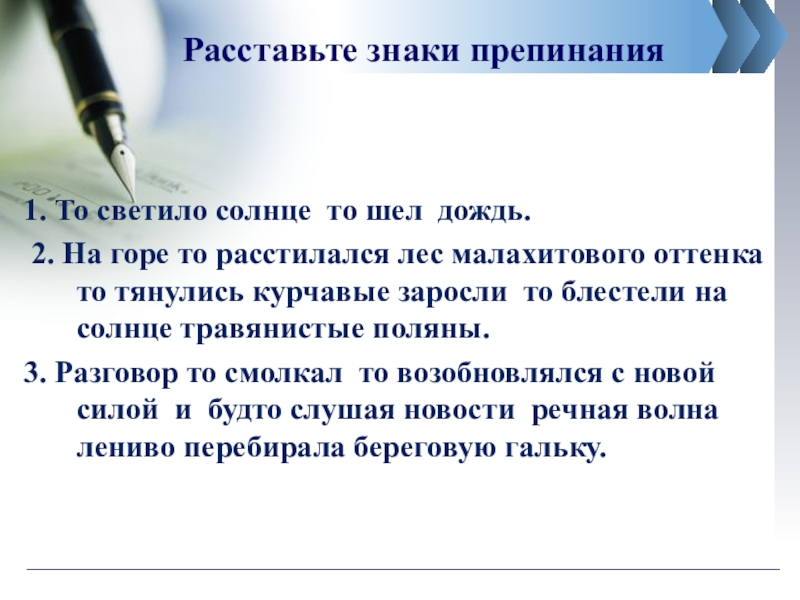 3. Разговор то смолкал то возобновлялся с новой силой и будто слушая новости речная волна лениво перебирала береговую гальку.