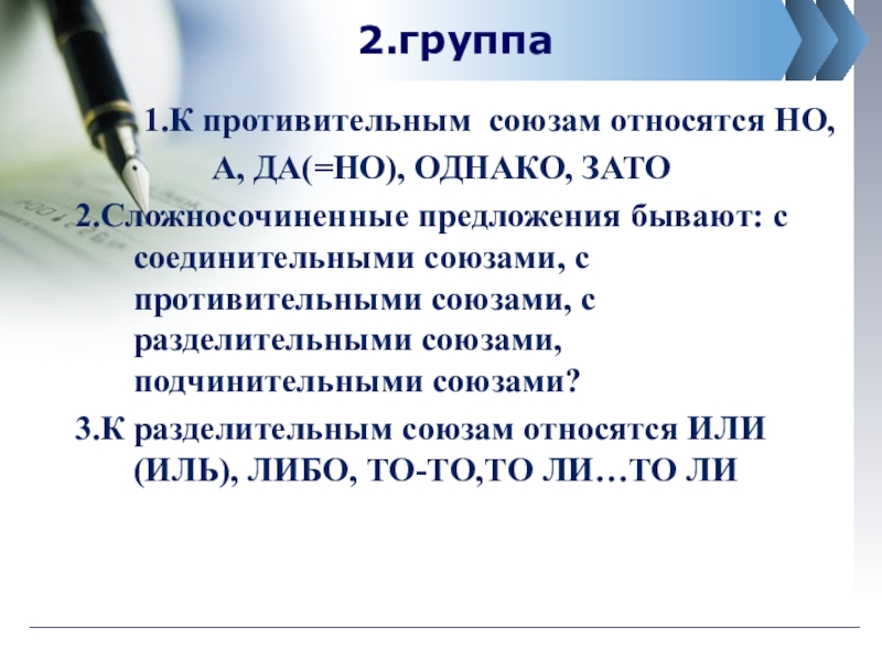 2.Сложносочиненные предложения бывают: с соединительными союзами, с противительными союзами, с разделительными союзами, подчинительными союзами?