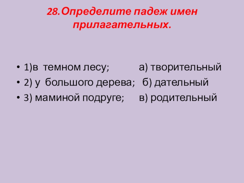 Слайд 2928.Определите падеж имен прилагательных.