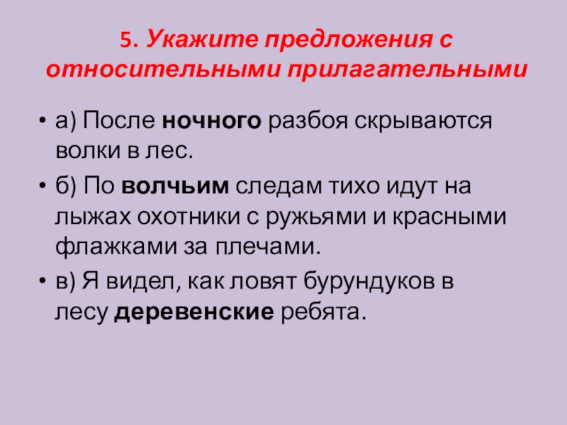 Слайд 65. Укажите предложения с относительными прилагательными