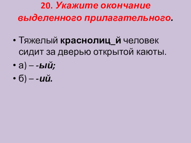 Слайд 2120. Укажите окончание выделенного прилагательного.