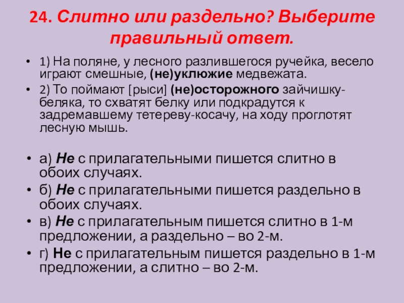 Слайд 2524. Слитно или раздельно? Выберите правильный ответ.