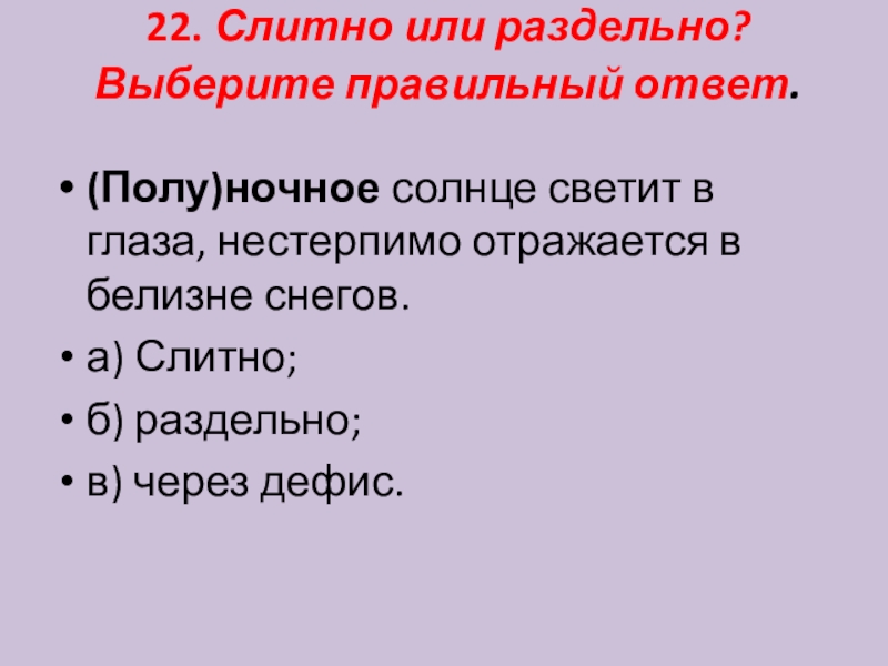Слайд 2322. Слитно или раздельно? Выберите правильный ответ.