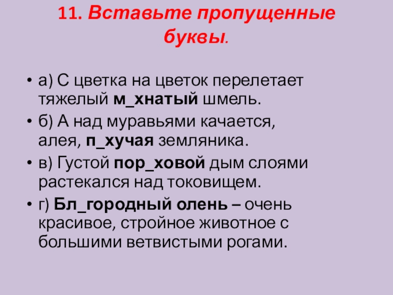 а) С цветка на цветок перелетает тяжелый м_хнатый шмель.