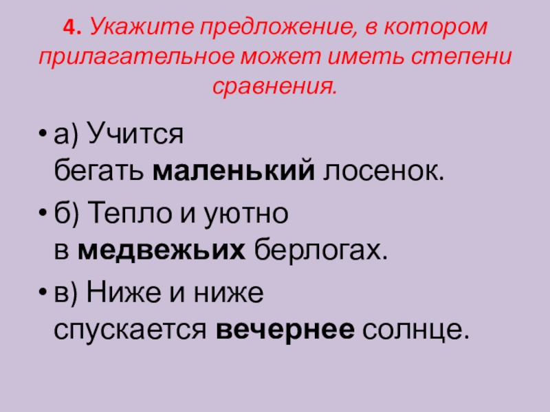 Слайд 54. Укажите предложение, в котором прилагательное может иметь степени сравнения.