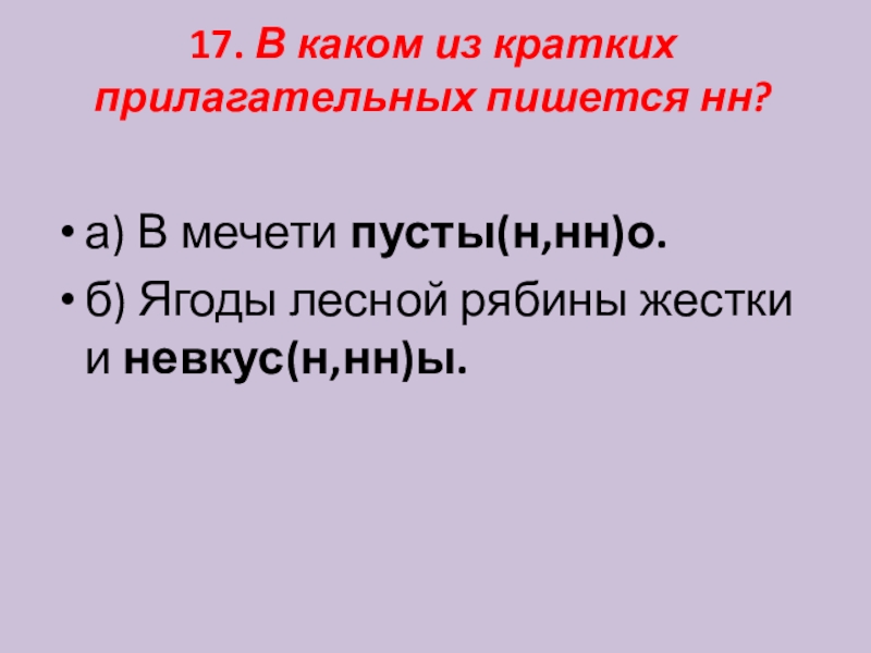 Слайд 1817. В каком из кратких прилагательных пишется нн?