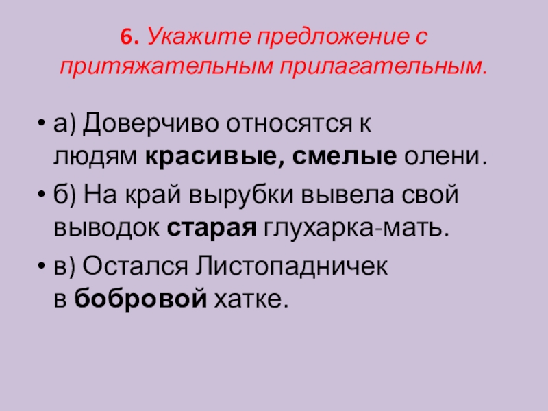 Слайд 76. Укажите предложение с притяжательным прилагательным.