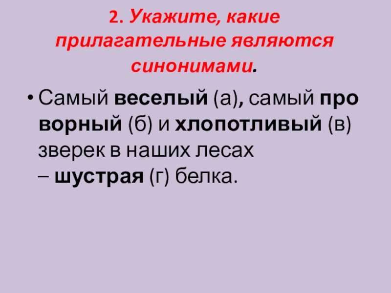 Слайд 32. Укажите, какие прилагательные являются синонимами.