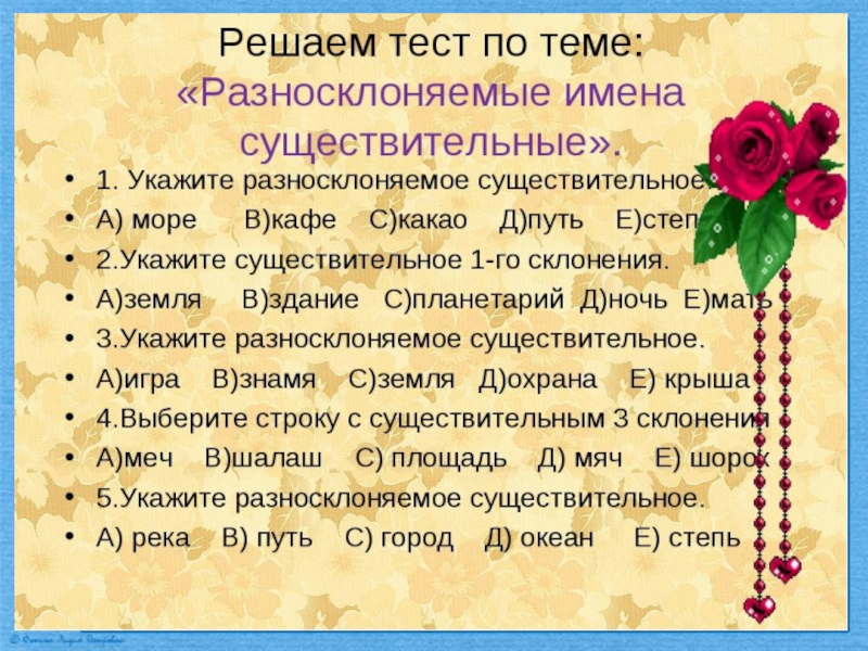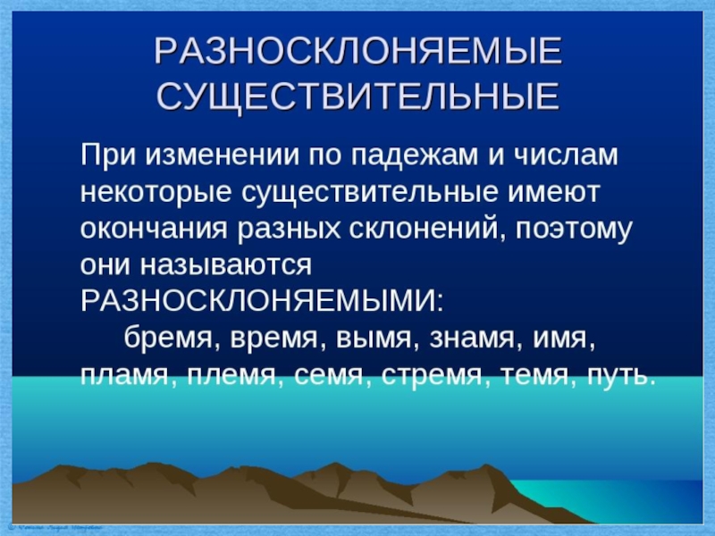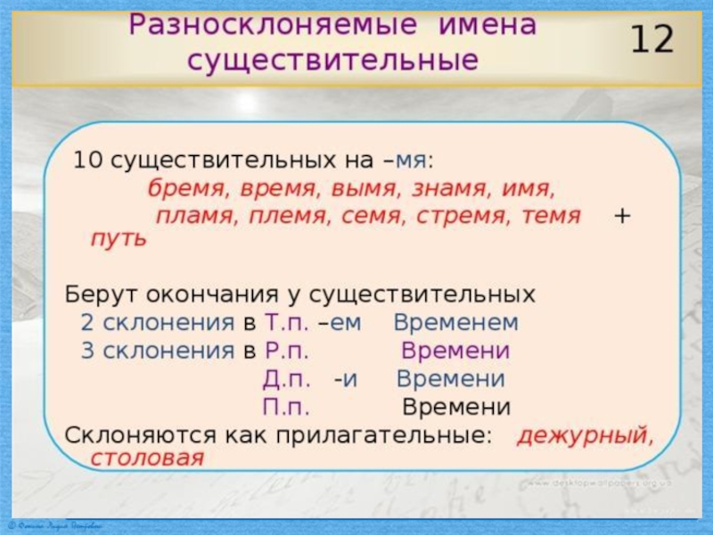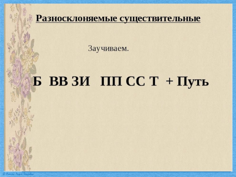 Презентация по русскому языку на тему Разносклоняемые существительные (6 класс) Русский язык