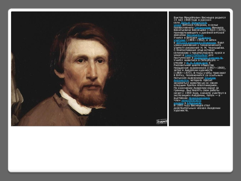Слайд 6Виктор Михайлович Васнецов родился 15 мая 1848 года в русском селе Лопьял Уржумского