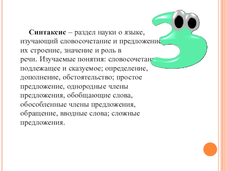 Слайд 10Синтаксис изучает строение словосочетаний и предложений.