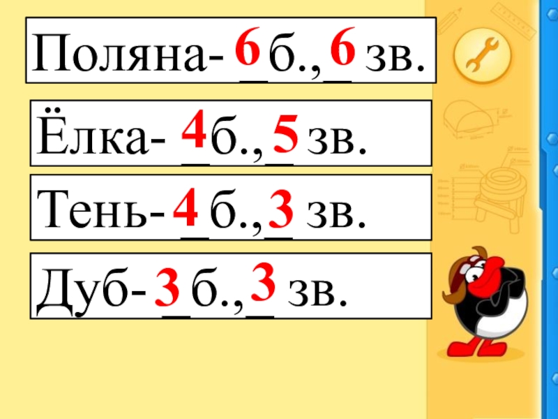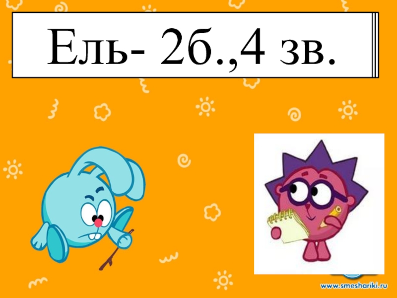 Пень- 3б.,4 зв.Кот – 4б., 3 зв.Ель- 2б.,4 зв.