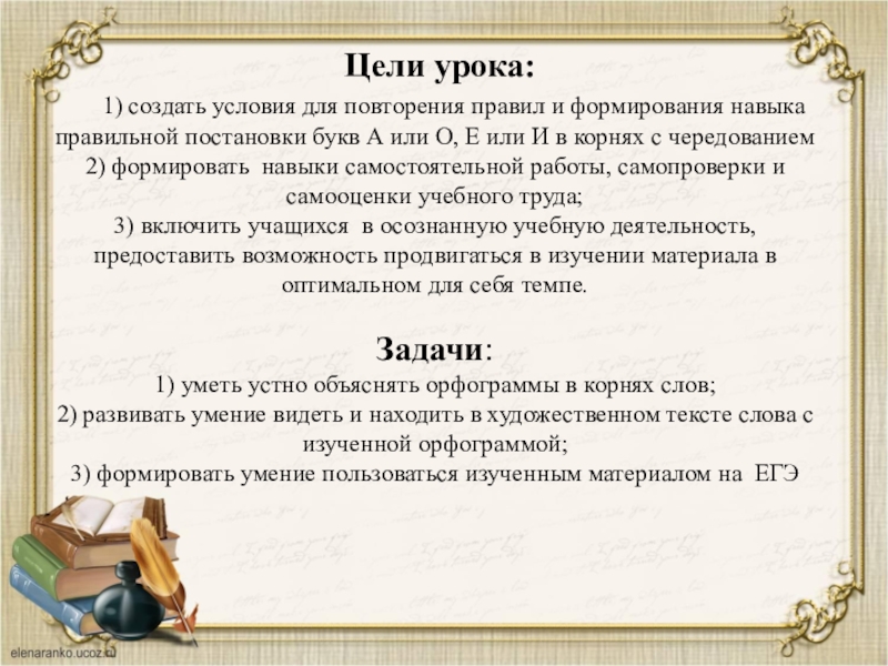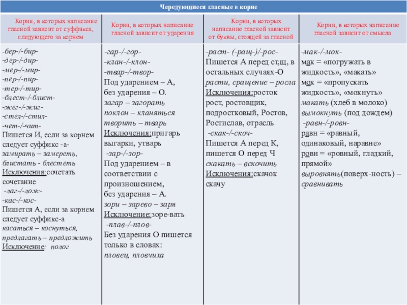 и формирования навыка правильной постановки букв А или О, Е или И в корнях с чередованием