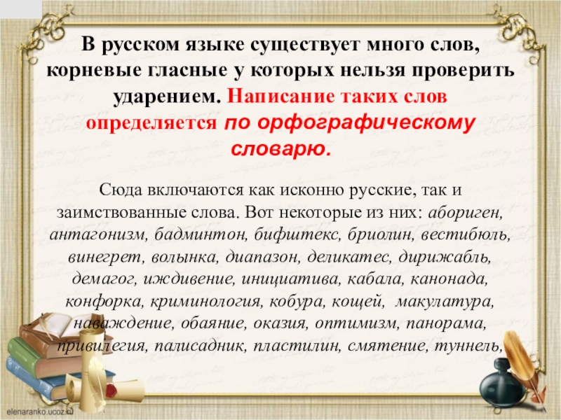 Слайд 9В русском языке существует много слов, корневые гласные у которых нельзя