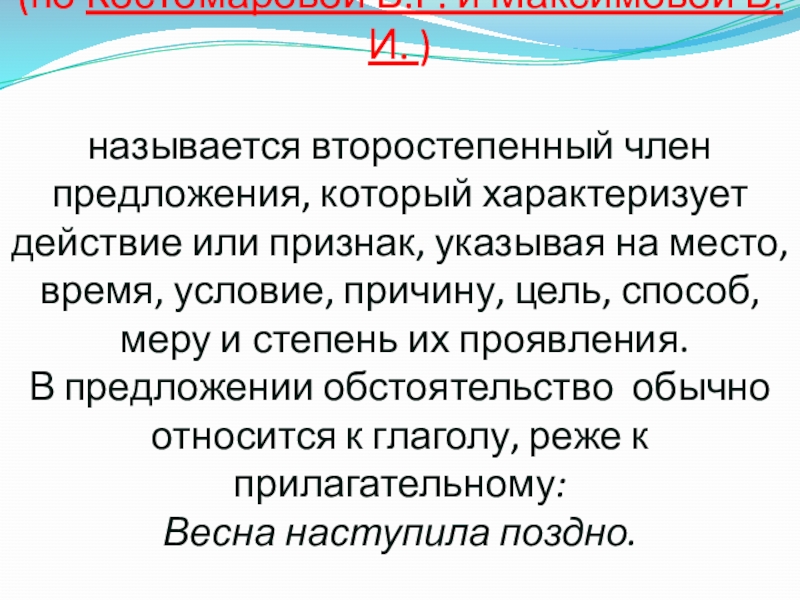 Обстоятельства времени называет время действия или проявления признака и отвечает на вопросы когда? с каких пор? до каких пор? вернуться поздно, работать вечерами;