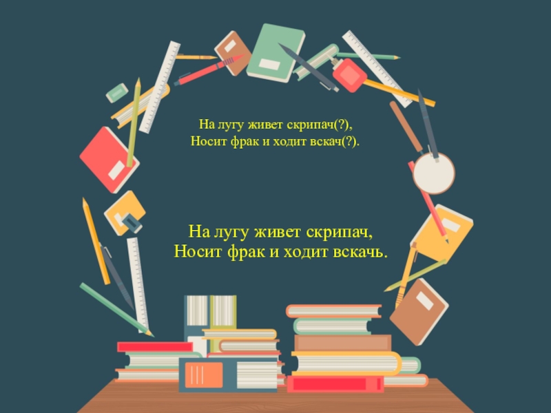 Слайд 2На лугу живет скрипач(?), Носит фрак и ходит вскач(?).