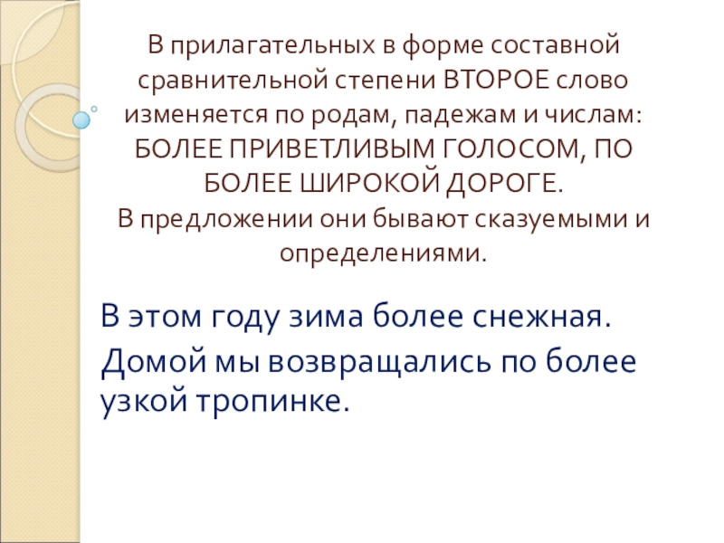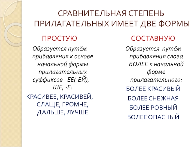 Образуется путём прибавления слова БОЛЕЕ к начальной форме прилагательного: