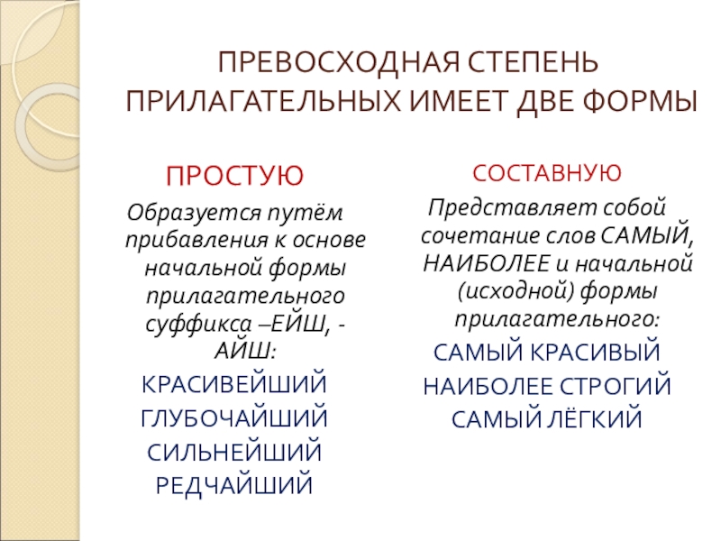 Представляет собой сочетание слов САМЫЙ, НАИБОЛЕЕ и начальной (исходной) формы прилагательного: